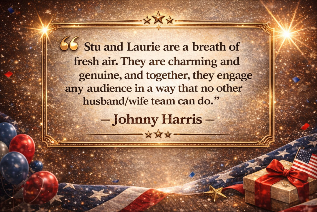 The Stu & Laurie Variety Hour brings back the heart of classic television with a fresh, modern twist. Hosted by husband/wife/team Stu and Laurie, two seasoned performers with a passion for uplifting entertainment. The show is a warm, family-oriented escape that invites viewers of all ages to laugh, sing, and share unforgettable moments. Whether you’re reliving cherished memories or making new ones, The Stu & Laurie Variety Hour is where timeless values of peace, love, and kindness meet the joy of music, comedy, and connection — all from the comfort of your living room.